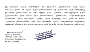 தற்போதைய இடர் நிலைமையை கருத்தில் கொண்டு வடக்கு மாகாண நீர்பாசனத் திணைக்களம் வெளியிட்டுள்ள ஊடக அறிக்கை